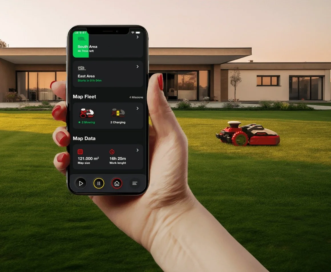 RTK relies on the companion app for initial setup, monitoring and modification. Since there is no physical boundary wire to determine the working area, virtual boundaries for working areas, stay-out-zones and transport paths are setup via app connection.