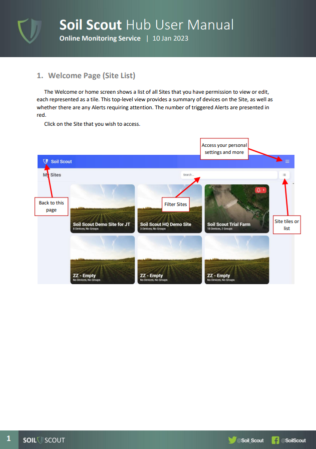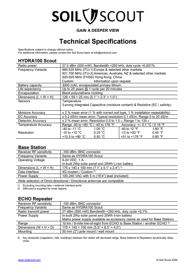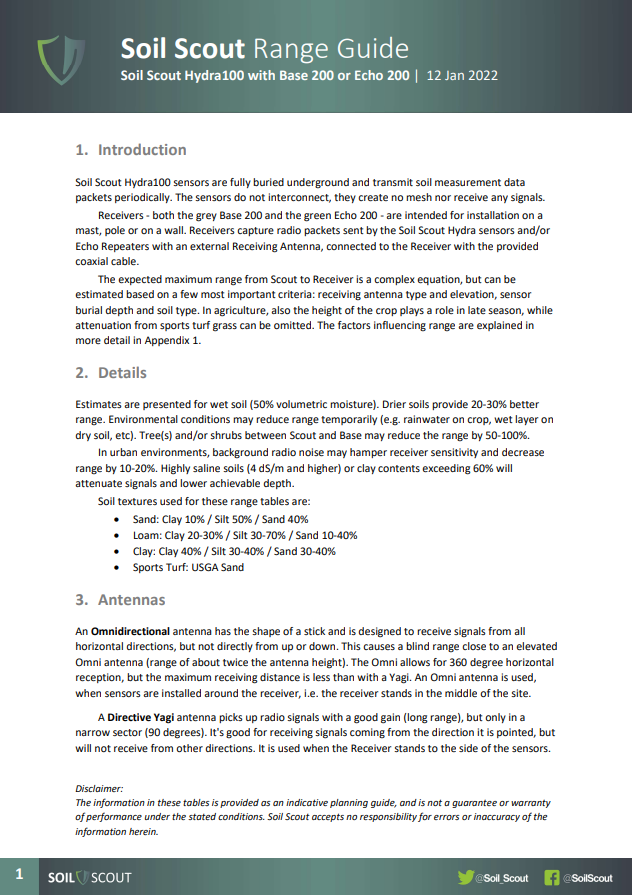 SOIL SCOUTBASE STATION/ RECIVERUSER MANUAL SOIL SCOUTHUBUSER MANUAL SOIL SCOUTINSTALLATIONRANGE GUIDE SOIL SCOUTSOIL SENSORSTECHNICAL SPECS SOIL SCOUTHYDRAUSER MANUAL